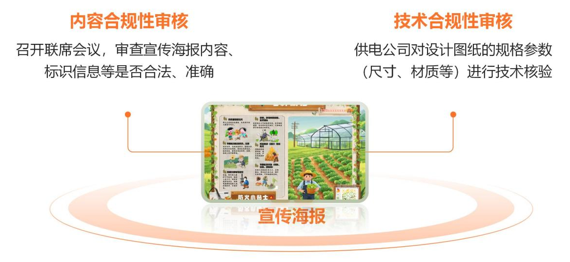 3.防風(fēng)險:逐級合規(guī)審查。建立宣傳海報“雙重審核”機制(如圖7)。召開聯(lián)席會議進(jìn)行內(nèi)容合規(guī)性審核,確保符合政策及公眾需求;供電公司進(jìn)行技術(shù)合規(guī)性審核,保障安全性與電力設(shè)施兼容性。