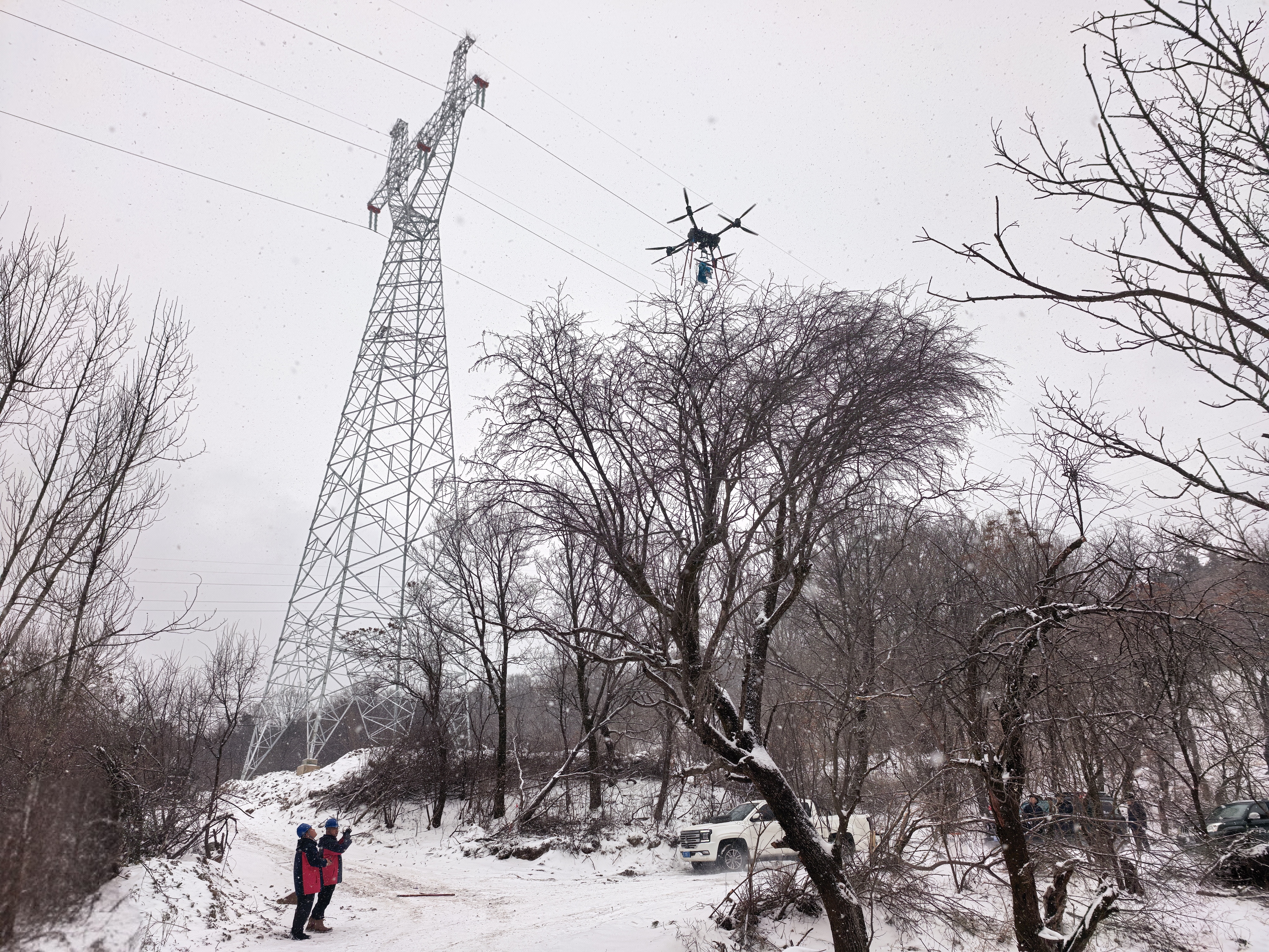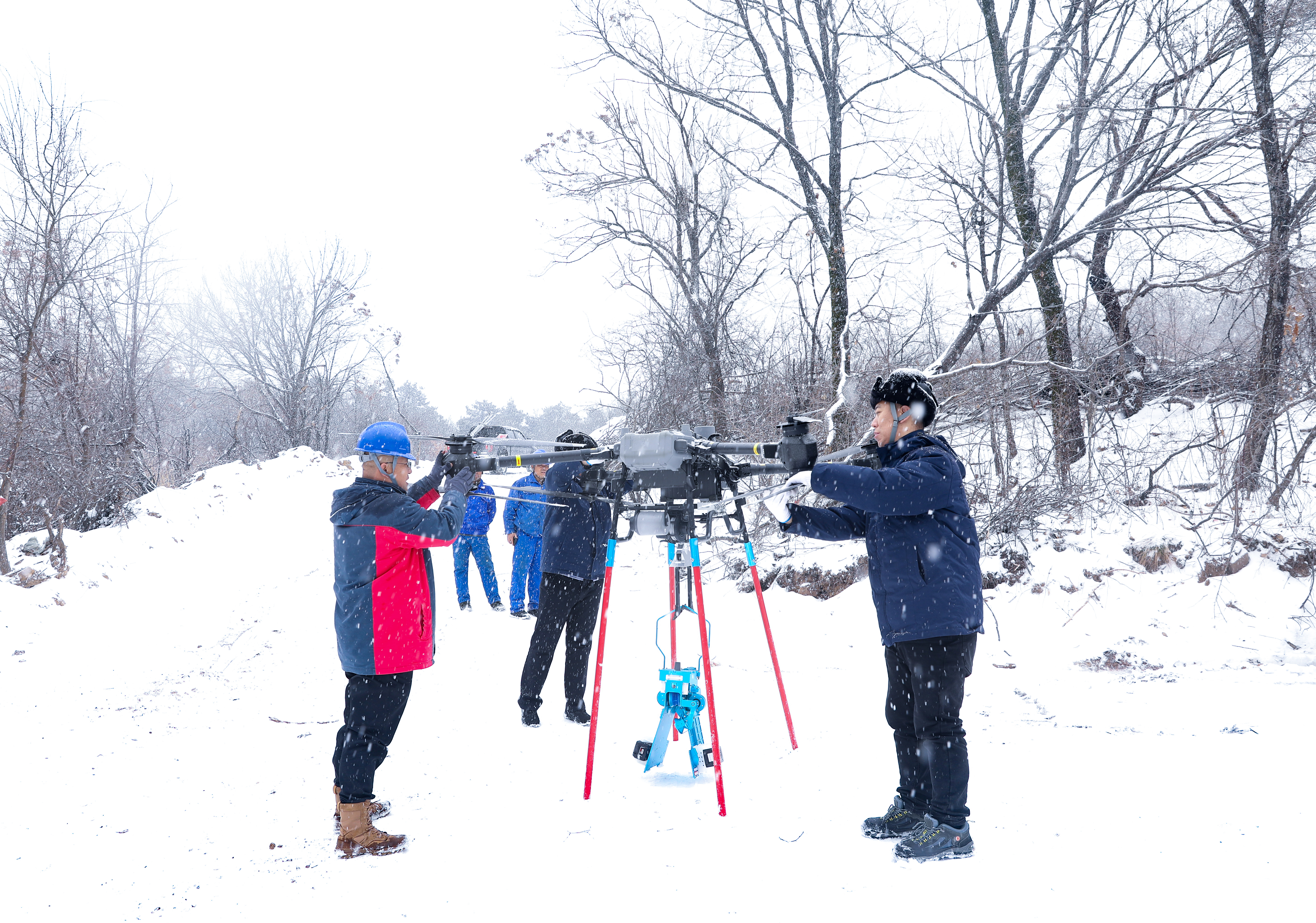 防冰,是一場與時(shí)間的賽跑。盡管當(dāng)前積雪尚未達(dá)到緊急破冰程度,但在金剛嶺這樣的險(xiǎn)峻地段,一場立體化防冰演練已在風(fēng)雪中展開。運(yùn)維人員采用“人巡+機(jī)巡+機(jī)器人協(xié)同除冰”模式,同步開展特巡與實(shí)戰(zhàn)化除冰裝備演練。