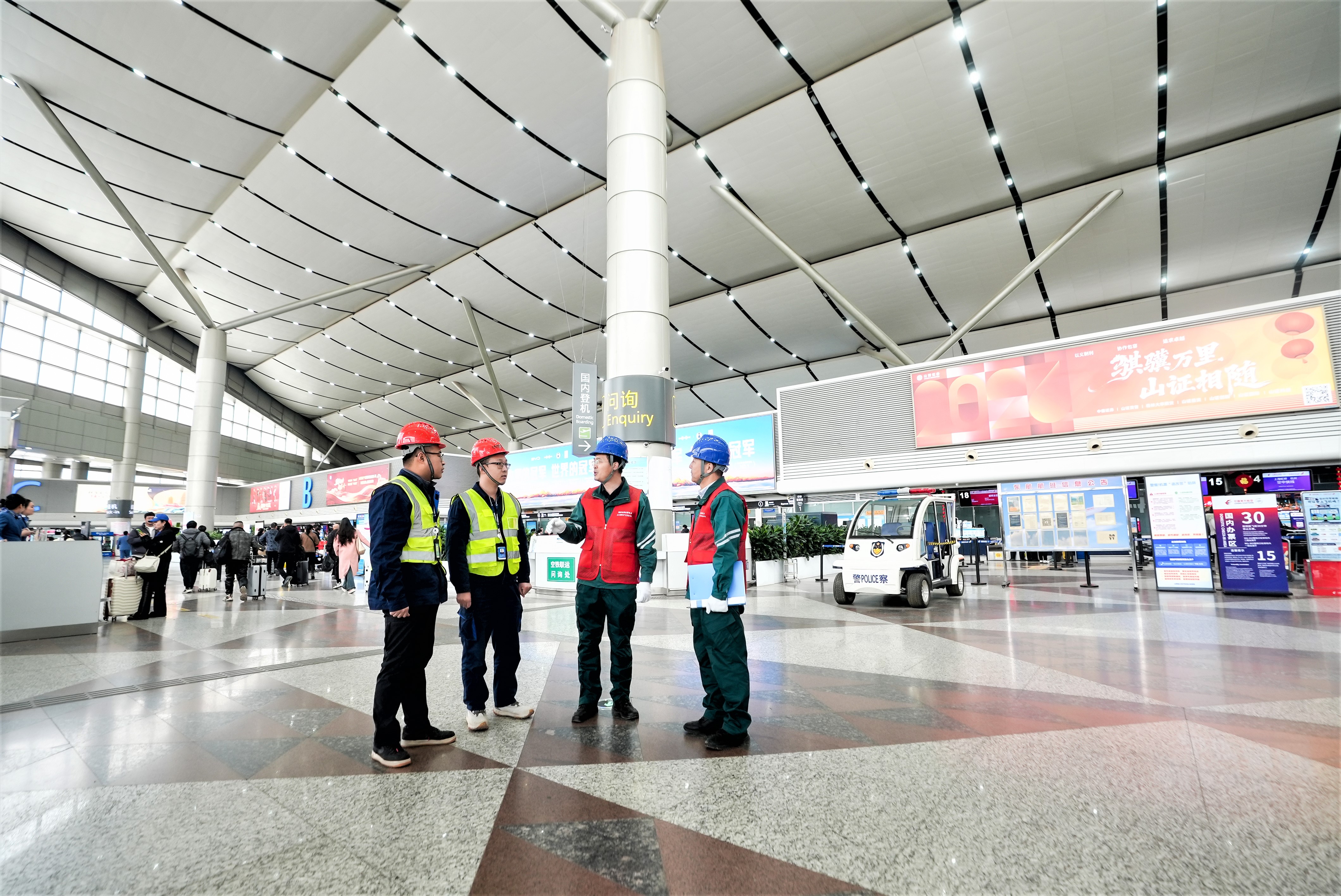 春節(jié)前夕,國網(wǎng)太原供電公司工作人員到太原武宿國際機場走訪,協(xié)助機場工作人員檢查供電設(shè)備,為春運客流高峰期提供充足電力保障。