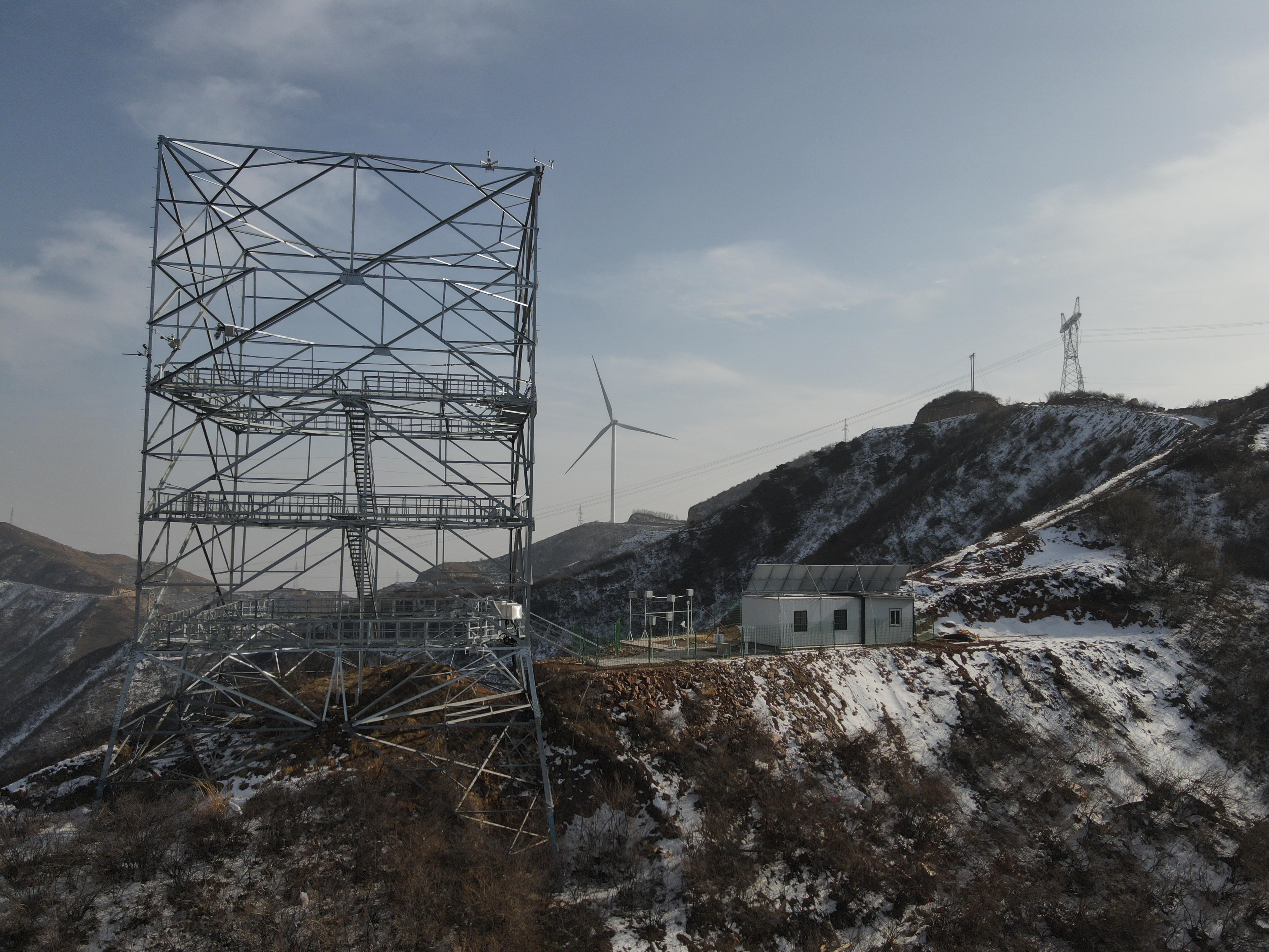 近年來,中條山區(qū)域覆冰嚴(yán)重威脅運城地區(qū)冬季供電和超特高壓線路安全運行,但有效的輸電線路覆冰、氣象要素觀測數(shù)據(jù)缺失嚴(yán)重。為填補這一空白,國網(wǎng)山西電科院聯(lián)合國網(wǎng)運城供電公司、國網(wǎng)山西超高壓輸電公司于2024年4月啟動中條山覆冰觀測研究站建設(shè),通過在110千伏金古線和500千伏風(fēng)運線附近建設(shè)2座大型觀冰站,在周邊在運重覆冰線路加裝覆冰圖像監(jiān)測裝置63處,有效解決中條山重覆冰區(qū)缺乏有效覆冰氣象觀測手段的問題。同時,觀測數(shù)據(jù)能夠為新建線路抗冰設(shè)計水平確定和在運線路覆冰風(fēng)險研判及融冰處置提供堅實支撐。